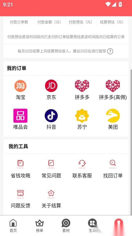 然后在“个人中心”菜单界面找到“我的工具”模块,点击其下方的“省钱攻略”按钮进入。