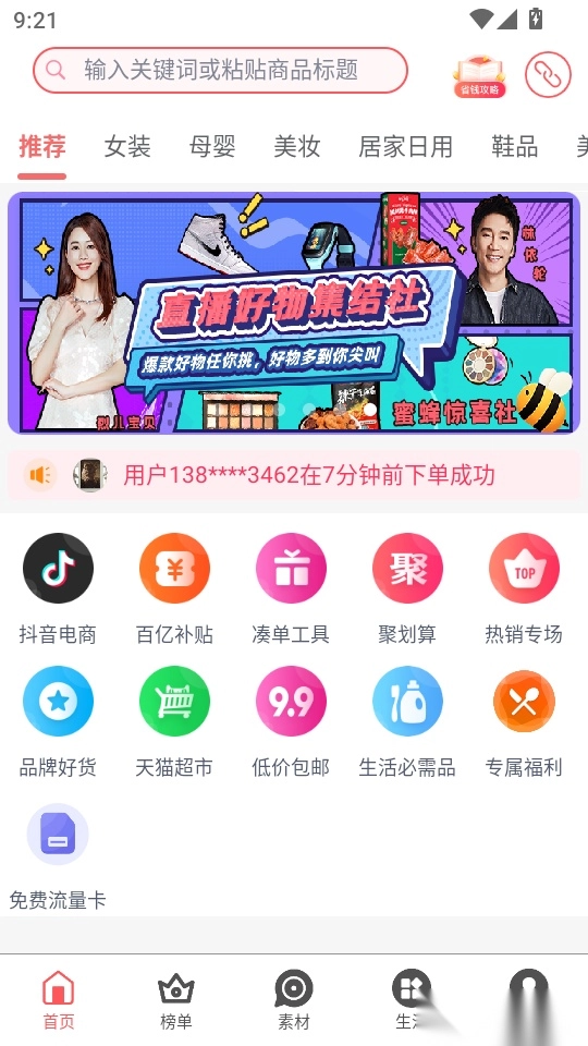 这里的商品都会第一时间更新,每天为您推荐热门商品,分享商品还能赚取更多佣金。