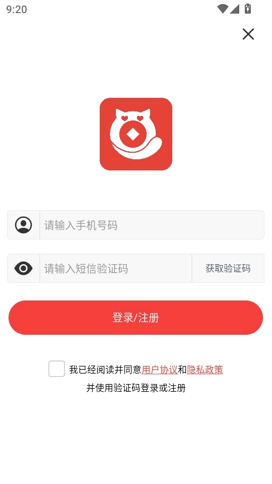 在软件登录界面填写手机号和短信验证码,随后点击“登录/注册”按钮即可进入程序。