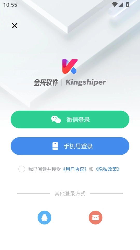 在登录界面,用户可以通过微信、QQ、邮箱或手机号这几种方式登录该软件。