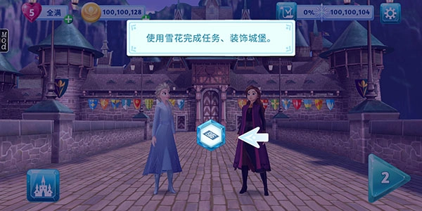 为整个王国进行专属定制设计:收集雪花来装点城堡,让城堡变得美轮美奂。