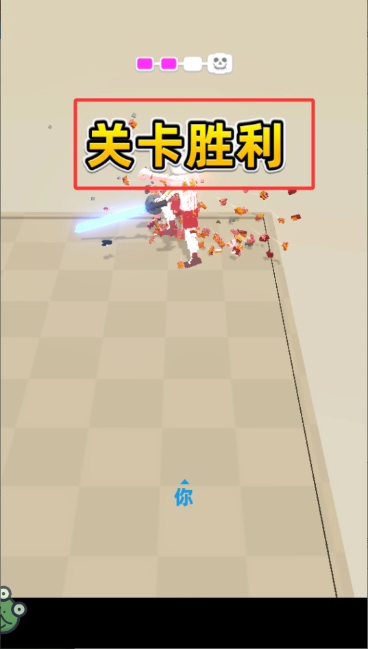 成功战胜敌人后会播放胜利动画,别忘了领取经验值奖励,这样就能解锁更炫酷的激光剑皮肤与特效了。