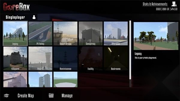 GoreBox配备了地图编辑功能,玩家既能在已有的游戏世界里体验游玩乐趣,也可以亲手打造专属的游戏场景。大家可以制作个性化地图,挑选心仪的纹理来装点它们,之后借助游戏内的工作室平台分享自己的创作成果,同时还能去探索其他玩家设计的各类地图。