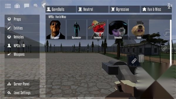 玩家和游戏里那些活跃的、遵循物理机制的布娃娃采用相同的伤害系统。这种共通的伤害机制让每场遭遇战都充满刺激感。此外,玩家能够调整各类游戏设置,比如开启无敌状态、启用noclip功能,或是切换至创造者模式。