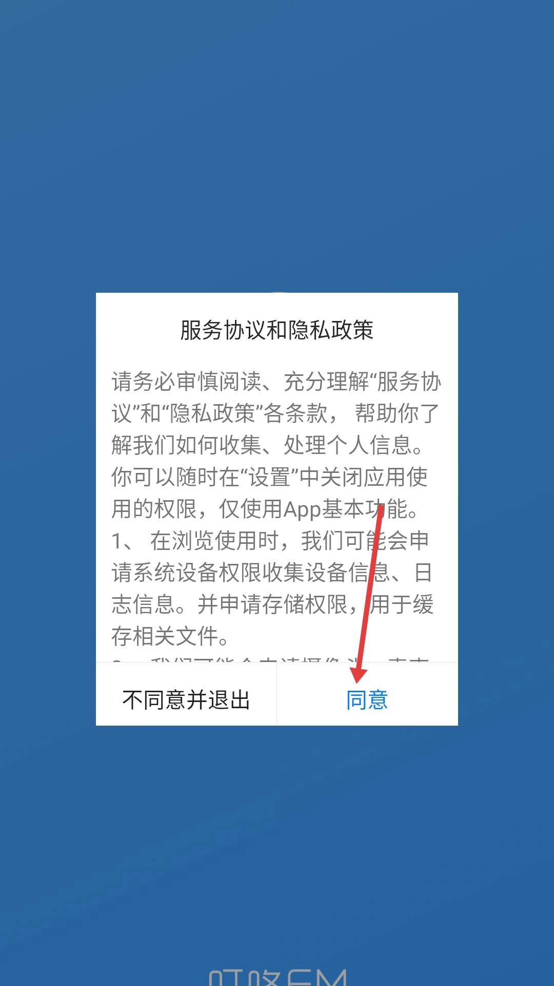 打开叮咚FM电台手机版,仔细阅读服务协议与隐私政策,确认无误后点击同意,即可进入主界面。