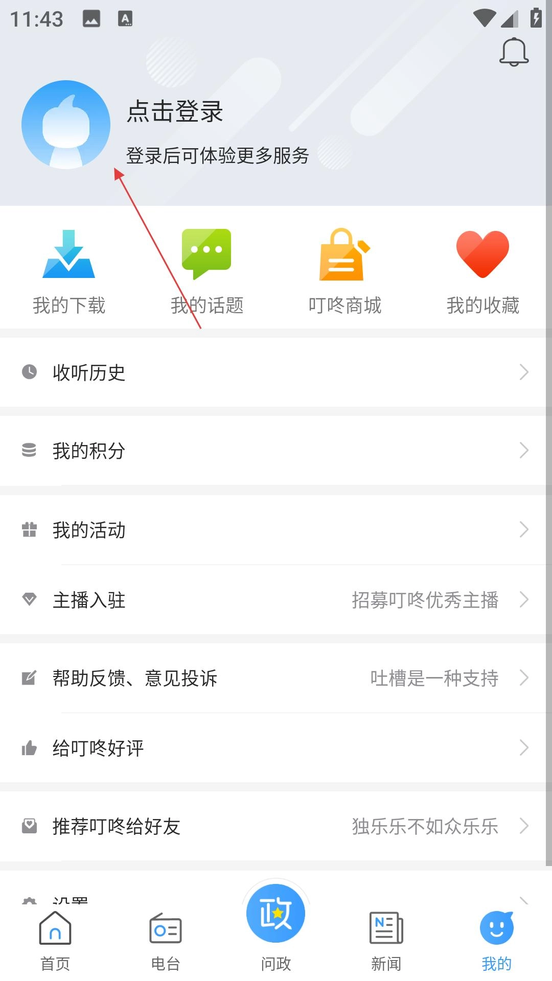 点击页面底部的“我的”选项,就能进入个人中心界面。要是还没登录账号,直接点击登录按钮就能完成登录操作。登录成功后,您可以查看收听历史以及其他详细信息。
