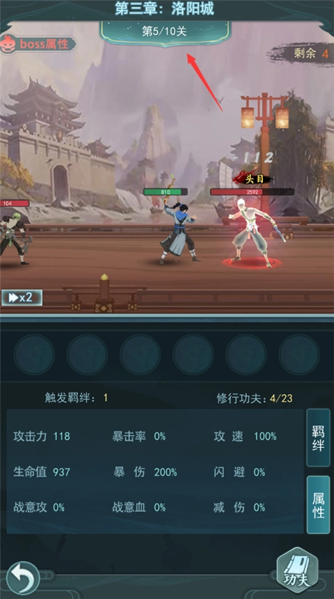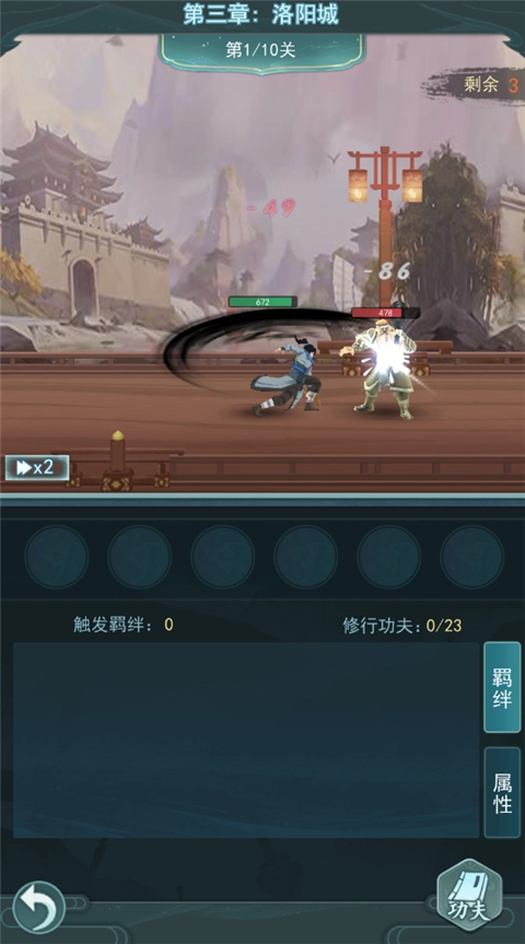 每击败一波敌人可以学习一项功夫修行