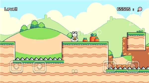 可以用方向键操控兔子移动,跳跃时需在空中短暂停顿一秒再继续起跳,这样才能越过障碍物;若长按向下箭头键,则能让兔子跳过更高层的障碍。