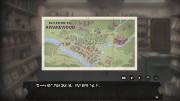 依次点击界面上的放大镜图标展开探查,会找到一张包含整个村落与林区的地图,店里的每个角落都流露着诡异,好似被阴云所笼罩。