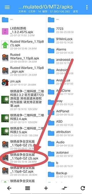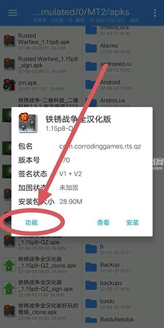 2、点击想改的APK,这里以铁锈战争为例