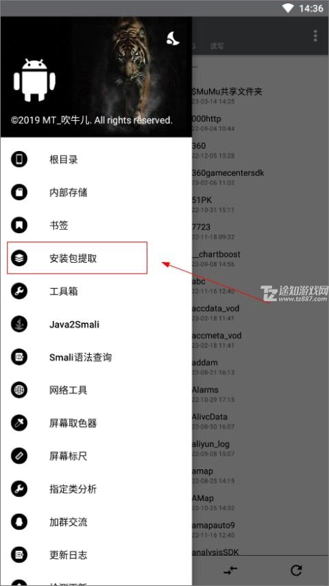 2、点击安装包提取;
