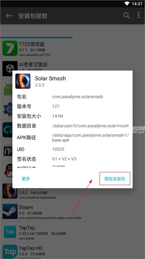 3、选择一个手机上要提取的应用或者游戏;
