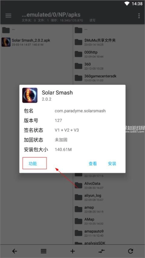 6、点击提取好的apk文件,然后点击功能;