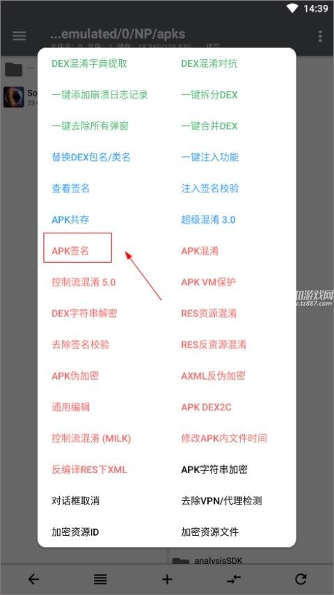 7、找到APK签名功能;