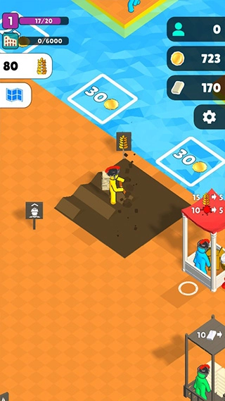 打开城市建造师游戏,操控橡皮人开垦荒地。