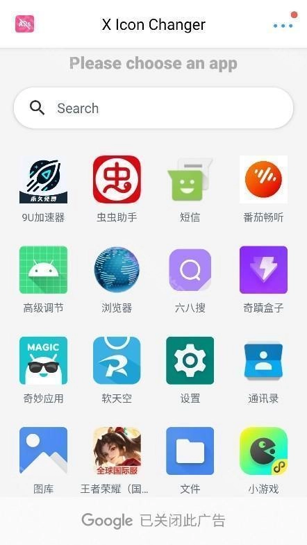 2、打开X Icon Changer的主界面,你将看到手机上已安装的所有应用图标。只需轻轻一点,你就能为选中的应用更换图标了。