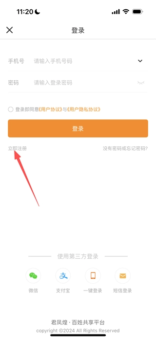 在登录页面,点击立即注册选项,进入注册页面。