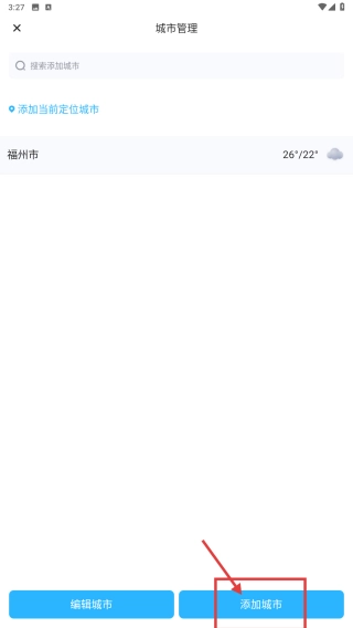 在城市管理页面,点击添加城市按钮,进入添加城市界面。