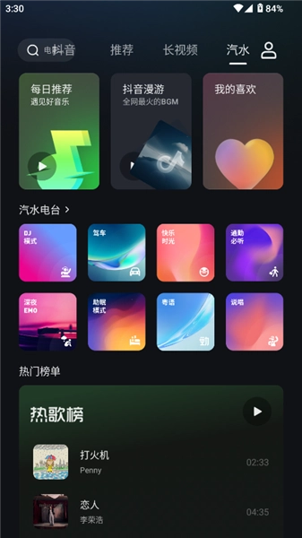 进入首页后,这里提供了短视频、长视频、抖音、汽水音乐等板块的内容,并且能够直接切换到汽水音乐。