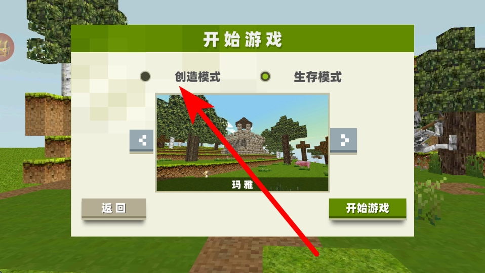 接下来是选择模式,游戏界面里有创造模式和生存模式两个选项,你可以依据自己的玩法喜好,选一个合适的模式,然后进入对应的游戏场景。