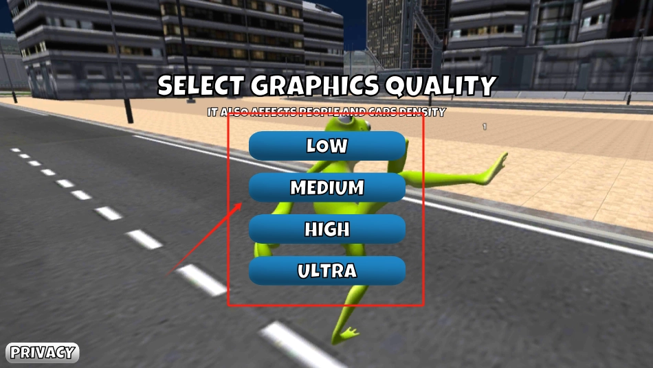 当看到SELECT GRAPHICS QUALITY界面时,点击红框内的ULTRA选项,即可设置为最高画质。