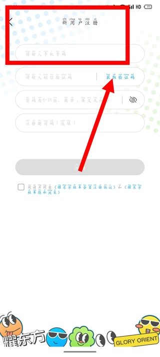 在新用户注册界面,填写手机号码后,点击“获取验证码”按钮。