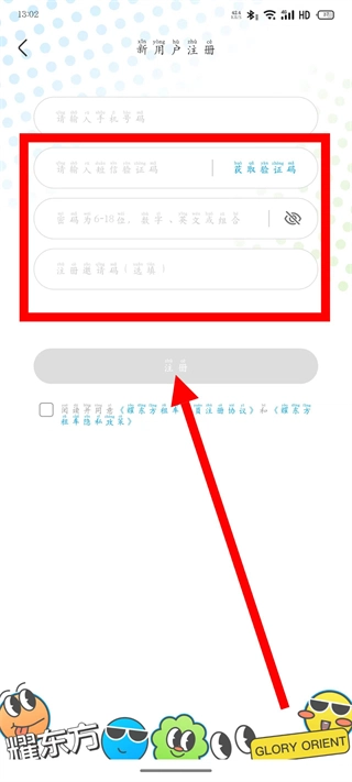 输入收到的短信验证码,设置密码,勾选同意相关协议后,点击注册,完成操作。