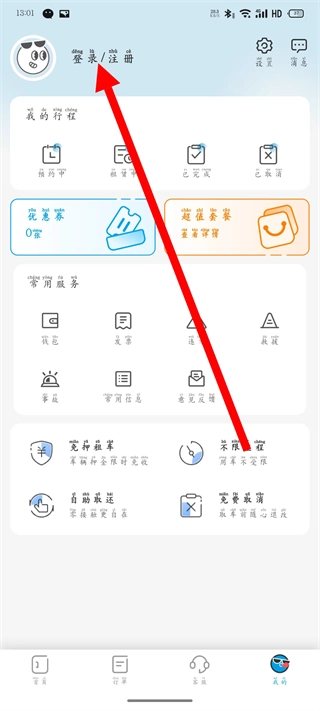 进入我的页面后,点击登录注册选项。
