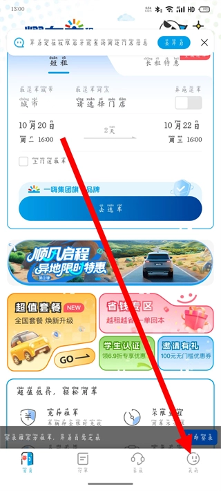打开耀东方租车,点击底部导航栏最右侧的我的。