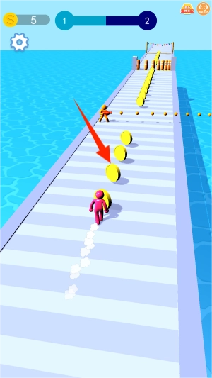 你可以通过左右滑动手指来控制角色移动,在移动过程中拾取沿途闪烁的金币以及随机出现的特殊道具。