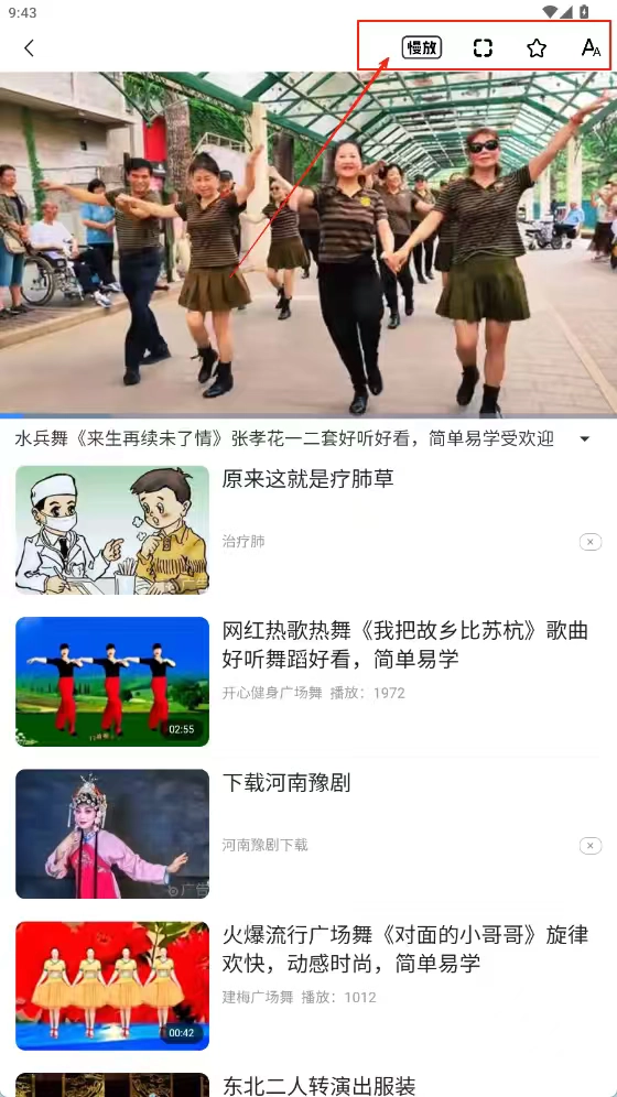 在播放界面使用慢放之类的功能时,也可以观看其他推荐的舞蹈视频。