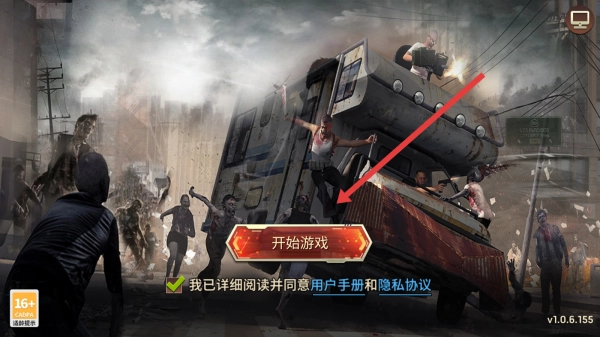 在启动界面,勾选“我已仔细阅读并同意用户手册与隐私协议”,点击【开始游戏】按钮,即可正式踏入丧尸求生的世界。
