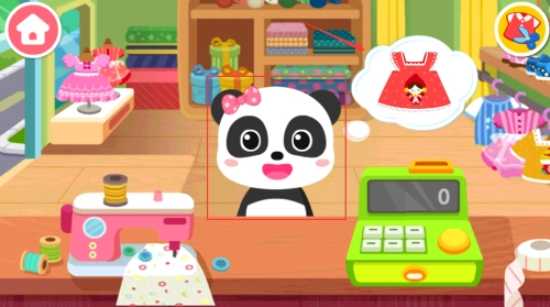 选择红框熊猫角色,按照箭头选取红色布料。