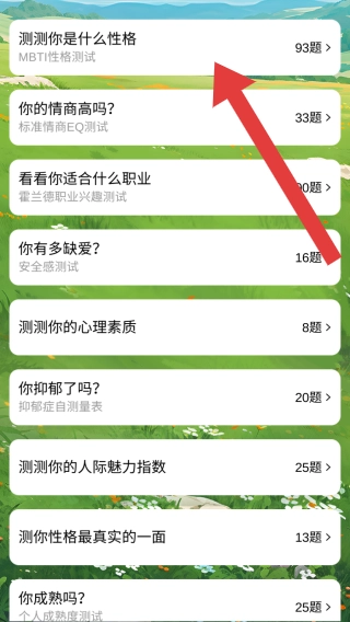 图片里列出了不同测试项目及其对应的题量,你可以依据自己的喜好挑选其中一个项目来测试,点击后就能开始。