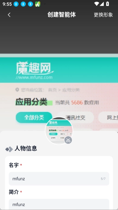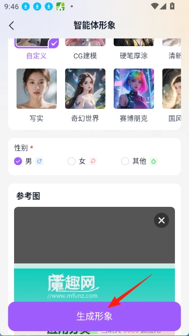 4.上传参考图,点击生成形象,预览后输入名字、简介、分类和标签。