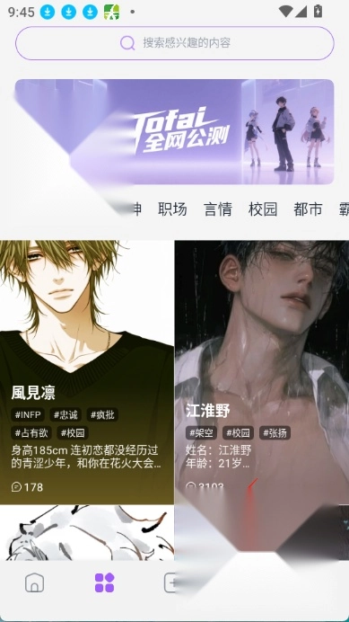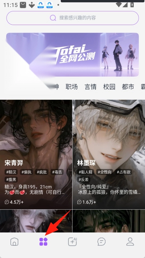 1.登录Tofai App,点击底部第二个图标进入角色广场。
