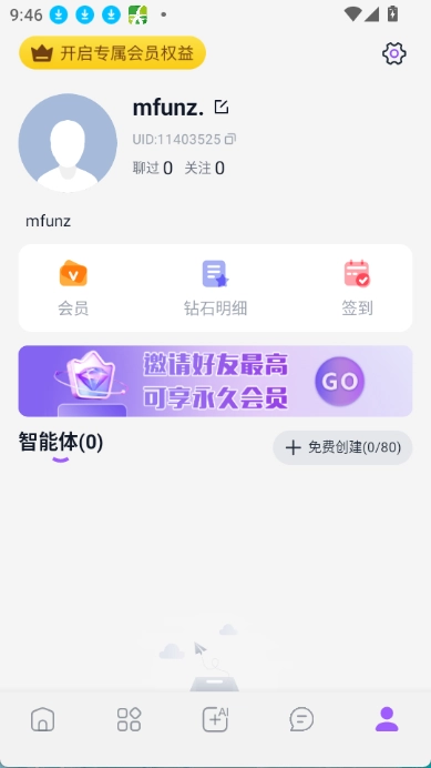 2.在个人中心,点击邀请好友最高可享永久会员海报。