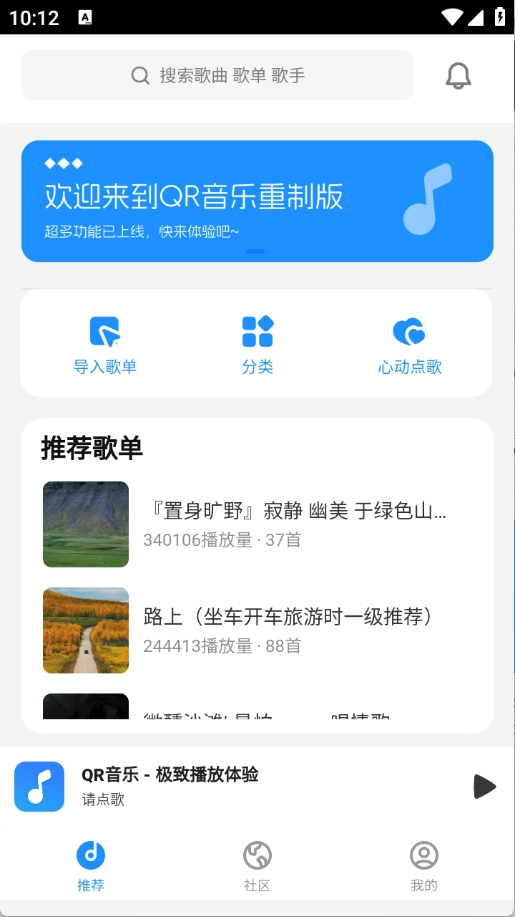 QR音乐平台汇聚了海量音乐资源,支持导入已有歌单,用户也能通过关键词快速检索想听的歌曲,还可自主创建专属歌单。平台的音乐资源更新及时,并且会依据用户的听歌偏好,智能推荐同类型的优质音乐,几乎能满足用户对各类音乐的聆听需求。