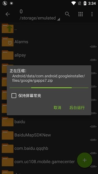 a: 点击文件名左侧图标选择文件,长按选中的文件选择"压缩",设置参数后确认。
