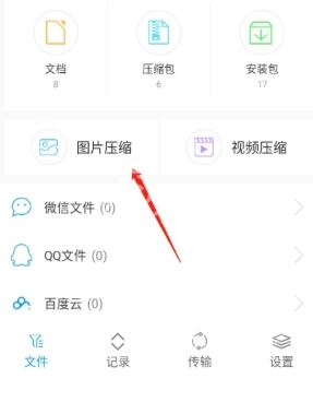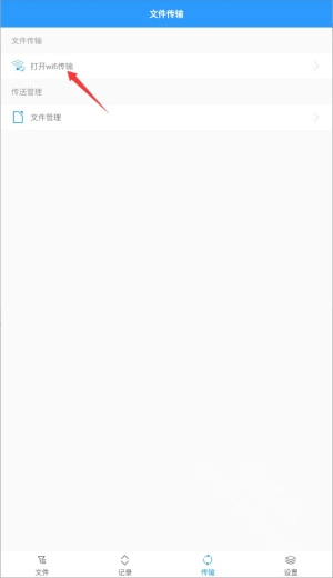 2. 在首页选择"传输"功能图标,进入文件传输管理界面。