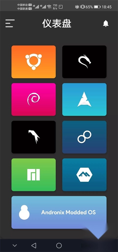 2、下载Andronix应用,打开后查看主界面提供的Linux发行版选项。