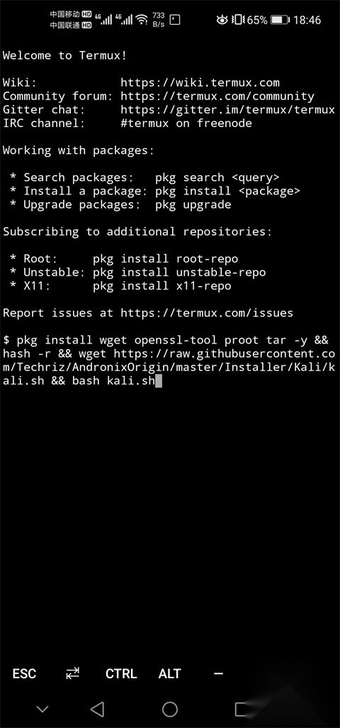 5、切换至Termux,长按屏幕粘贴命令代码。