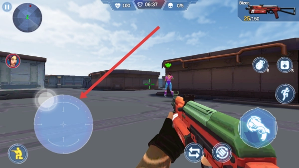 进入1-1关卡开始战斗,左手通过虚拟摇杆控制角色移动,右手点击射击按钮攻击敌人,以此推进关卡进度。