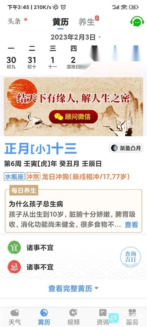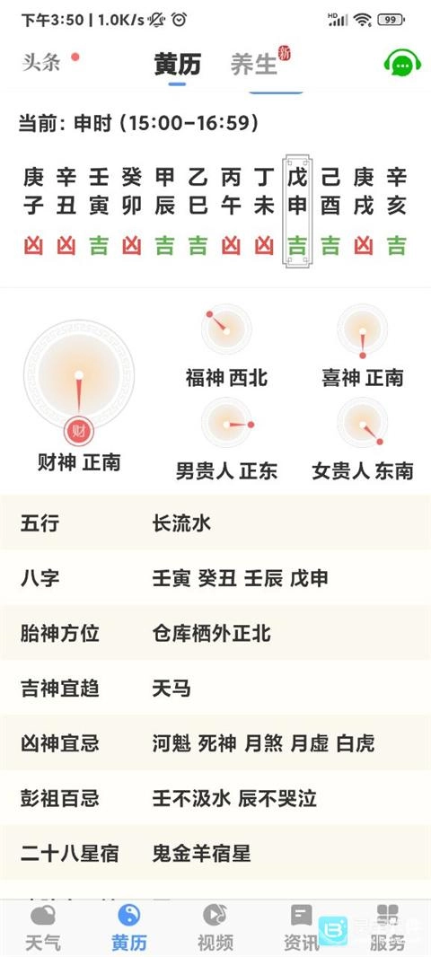 2、点击黄历板块能看今天的日子详情;