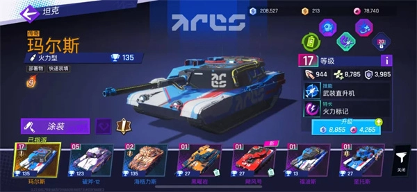 3、只要不断提升段位,那么就能解锁更高高级坦克,以及酷炫的皮肤,可以自由搭配的。