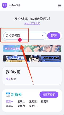 1、要是你有想观看的动漫,直接在首页的搜索栏输入动漫名称进行搜索查找就可以了,直接搜索就行。