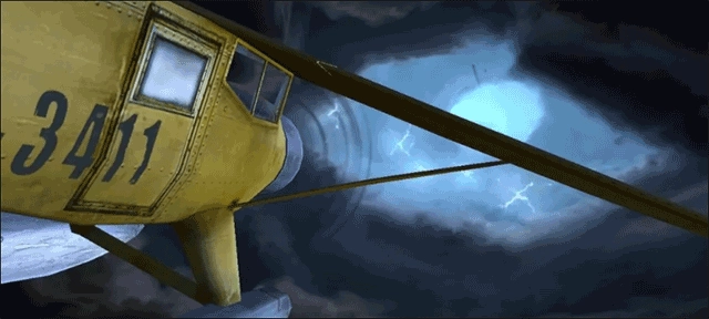1、我们进入游戏里,丁丁和船长驾驶着小飞机在电闪雷鸣的云层中穿行,危机重重。
