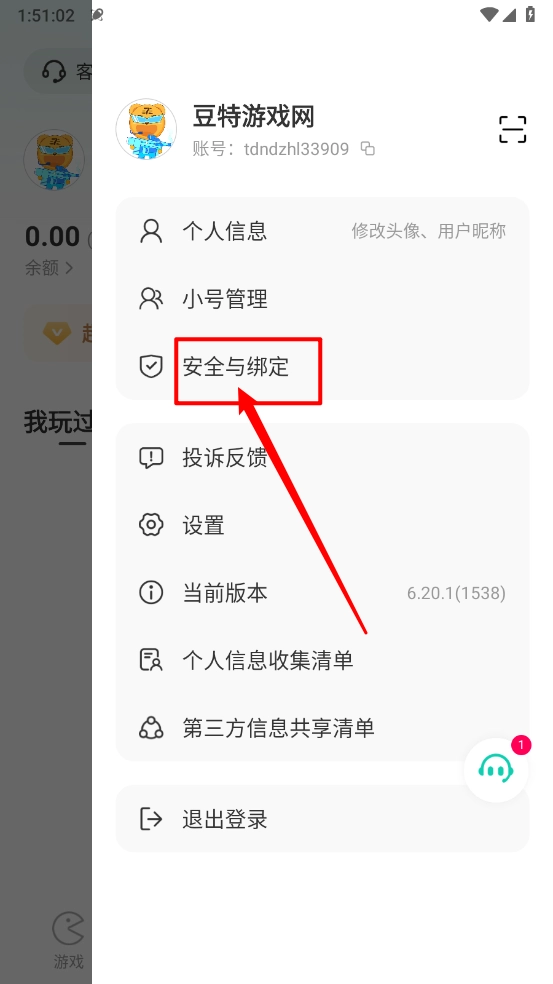 3、在弹出的功能列表中选择"安全与绑定"选项。
