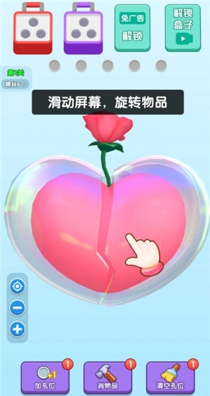 4. 点击对应颜色的螺丝,收集三个消除盒子