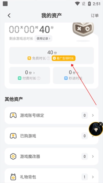 菜鸡云游戏每天提供免费时长,观看一小段广告即可领取40分钟。完成后根据游戏热度排队免费畅玩。若时长用完,可通过房间打赏获得加时卡,评论点赞他人内容以换取额外时间。还可在个人中心的资产页面点击“看广告免费领时长”,再次观看广告领取。排队时,平台提供趣味小游戏消磨时间。